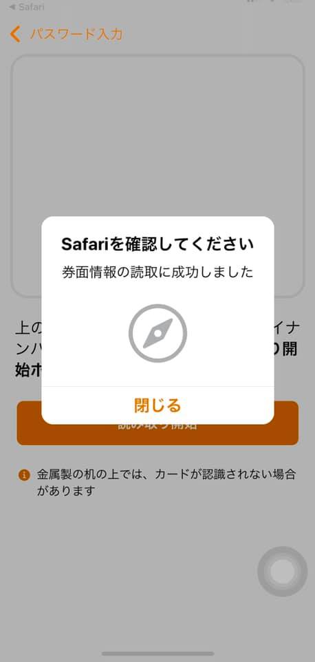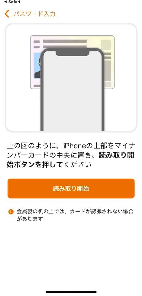 いよいよマイナンバーカードの読み取りに入ります。終了すると「Safariを確認してください」との表示が出ます。ここで、先ほどの注意書きに従って、画面左上の「Safari」をクリックします。だんだん、テクニカルになってきました。