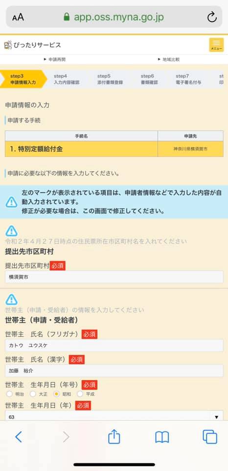 ようやく情報の入力に入ります。ここまでで1時間以上の時間が経過しました。申請受付側的には「STEP3」ですが、申請者側的には「STEP15」です。