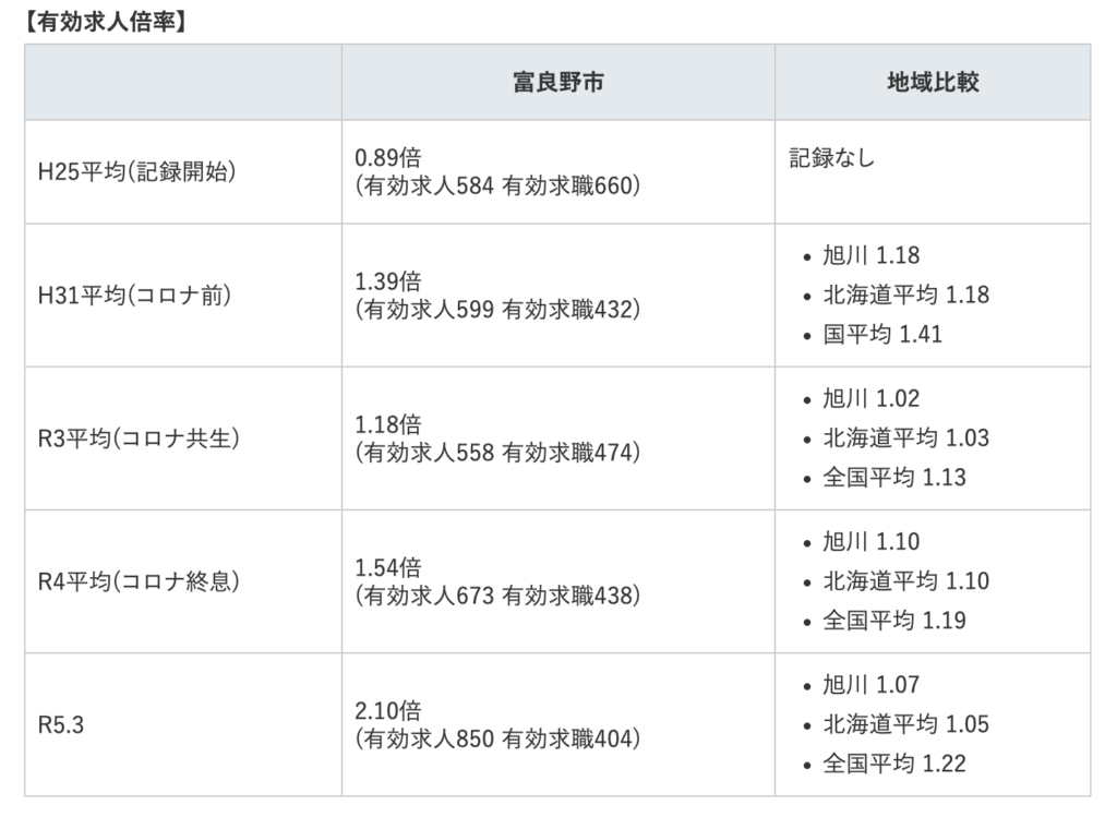 (表2)富良野市の有効求人倍率は他地域よりも高い