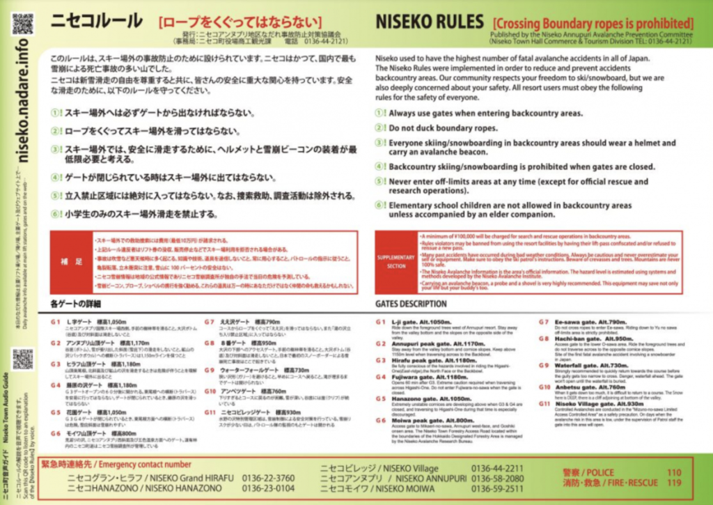 ゲートは雪崩リスクの高い日には閉じられますが、低い日には開放し、個人の責任でコース外滑走ができます。こうしたルールを策定したことが画期的だとして、海外のメディアに注目されました。以降、「ニセコルール」圏内での死亡事故は起こっていません。