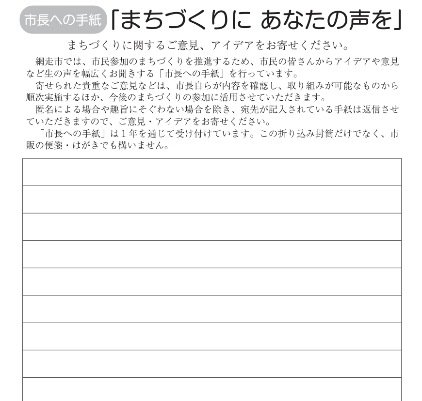 市の広報誌には市長に直接意見を送る様式がある(出典:広報あばしり)